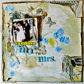 This page will become the title page of my wedding album. Though it might not be my usual style, it's very special to me, both because of the amount of work I put into it and because of the end result.