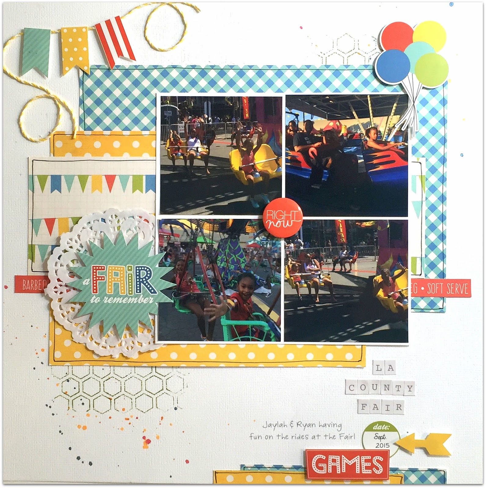 "This is a perfect challenge to get photos scrapped and to use your stash! These are photos from the Fair and I couldn't wait to use the Fair themed paper from Echo Park!  For this challenge I used: