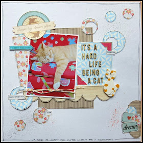 "I started off by checking my stash to see what wooden embellishments I had and found the cute cat that is sitting by the title. I knew then it would have to be a page about the cutest member of the family! I also found some balsa wood and was surprised at how easily I could cut it into a scalloped border. I just had to use the Studio Calico letters as they were the perfect size for my long title - I have run out of the letter 'A' now though!! This is such a fun challenge and I'm looking forward to seeing your take on it."